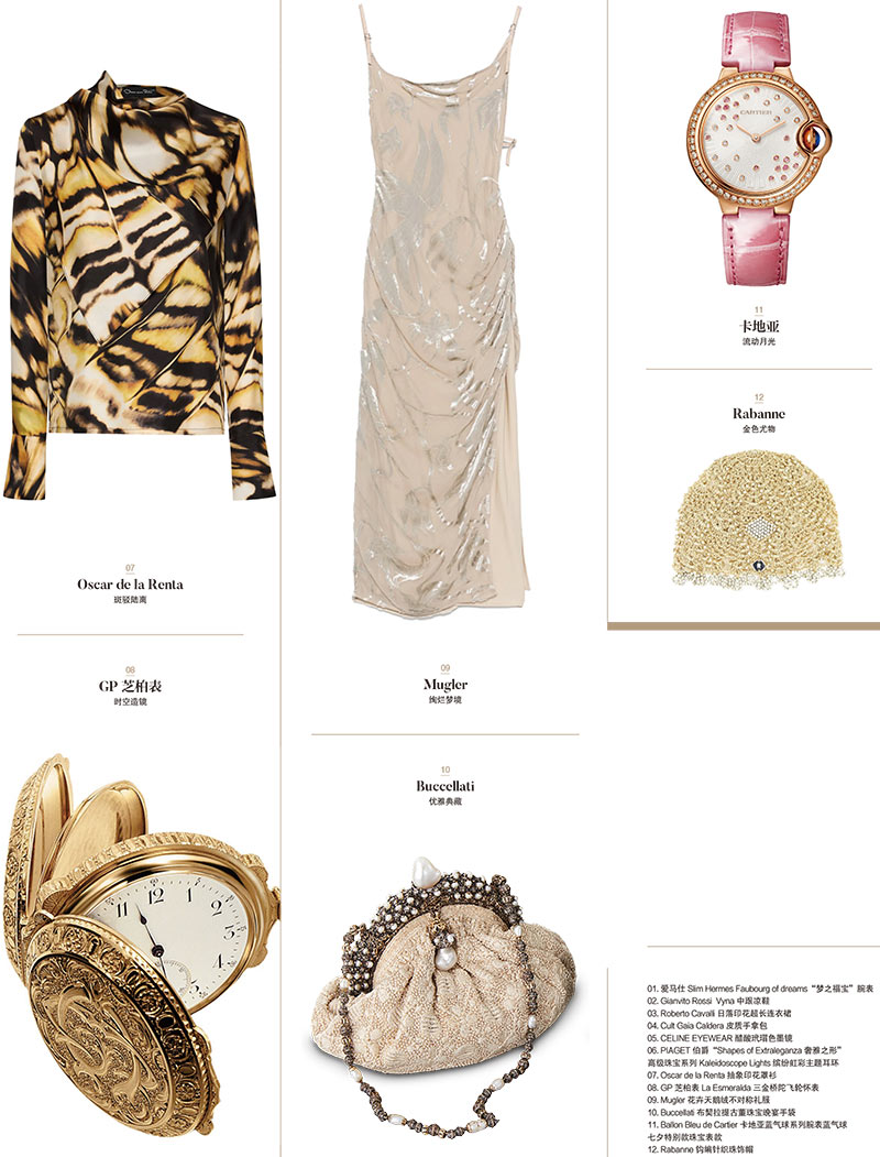 织梦绮境编辑 王惠珩 Selina Wang 撰文 王惠珩 Selina Wang设计 聂琳 织物从来都不只是单纯的材质,它是设计师表达美学理念、传递情感温度的第二层皮肤。正如《掌心宇宙》中轻薄如皮肤的织物,承载着艺术家对身体与感知的深度探索,时装中的织物同样在光影交错间,为我们编织出一个个绮丽梦幻的时尚绮境,等待着我们去触摸、去感受、去沉浸。正如PIAGET伯爵珠宝在耳畔闪耀,爱马仕腕表映衬梦之轨迹,Roberto Cavalli连衣裙绘就日落盛景,织物宛如灵动的画布,承载着光影的奇幻交响。它贴合肌肤,随身形律动,在明暗变幻中诉说独特故事。