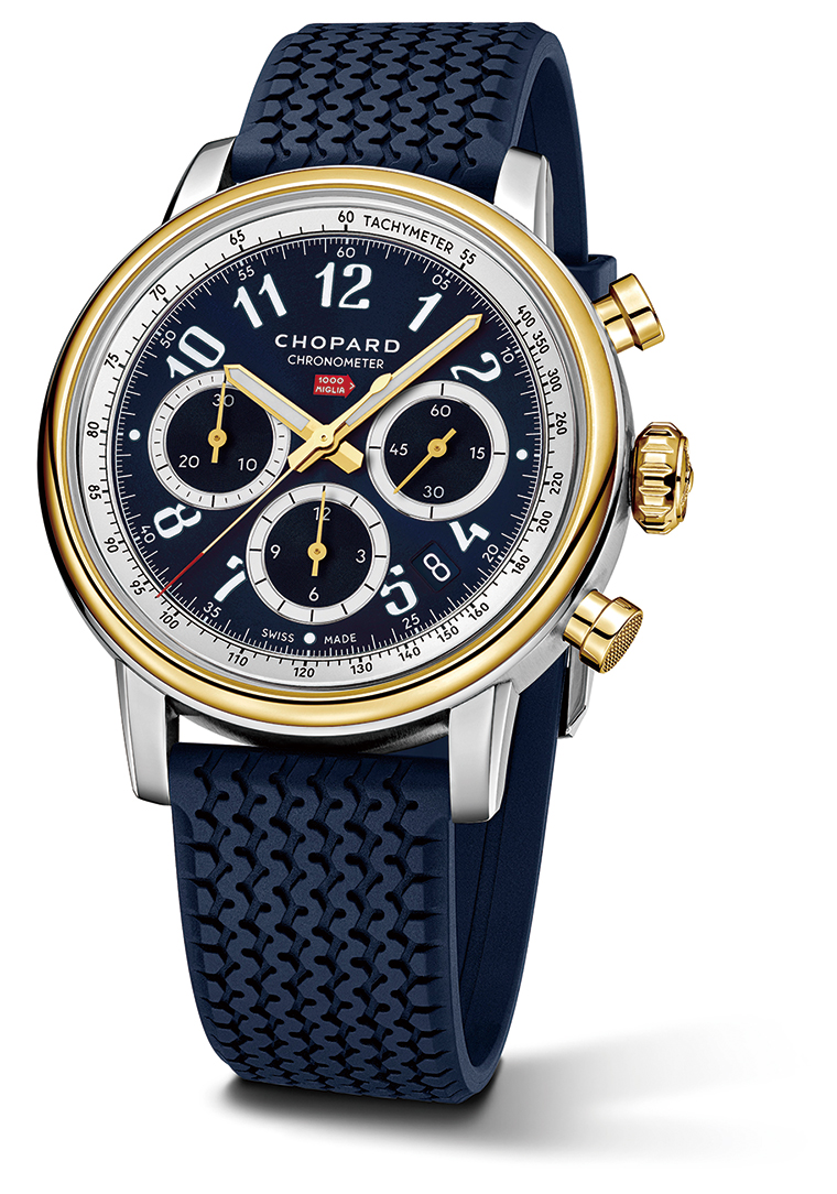 Mille Miglia Classic Chronograph Jacky Ickx腕表 表盘搭配白色时间指示,时标与时、分指针还涂覆Super-Luminova®荧光涂层,无论昼夜皆清晰可辨。日历转盘以白色数字显示日期。其中日期数字“6”和“24”特地显示为红色,巧妙呼应杰克·埃克斯在勒芒24小时耐力赛曾六次摘取冠军。表圈外缘镌刻速度测算时必不可少的渐进式测速刻度,而表盘被一个蓝宝石水晶“玻璃盒”式凸圆形表镜保护,由纤细表圈固定。凸圆形表镜在1930年代至1960年代期间曾被广泛使用,不仅令腕表更显美观大方,亦令表盘全貌一览无余,可进一步凸显腕表和谐均衡的整体比例。与普通表镜相比,这种表镜的加工工艺要求更高,令光线得以从腕表上方和两侧穿透,在表盘上映射出闪耀的光影,令表盘布局层次鲜明,富有立体感。自动上链计时码表机芯荣获瑞士官方天文台精密时计认证,动力储存达54小时。