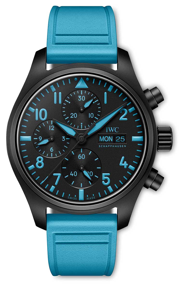 飞行员系列计时腕表乔治·拉塞尔特别版 在F1的赛道上,蓝色独树一帜,已成为拉塞尔的专属标识,象征着他作为车手所具备的双重特质:压力下从容不迫,竞赛中锐意进取。拉塞尔现今的赛车头盔依然沿用蓝色设计,这种标志性的蓝色正是这款特别版腕表的创意核心:表盘细节与橡胶表带均采用了这一独特蓝色。特别版(型号:IW389411)采用41.9毫米表壳,由黑色氧化锆陶瓷制成。该材质由万国表在四十年前率先采用,彰显着品牌自1980年代起在创新材料领域所积累的专长。陶瓷比精钢轻盈,且具有极强的抗刮性,是腕表制作的理想材质。表冠与按钮采用万国表自主研发的Ceratanium瓷化钛金属制成,这种材质既如钛金属般轻盈坚固,又如陶瓷般坚硬防刮。黑色表盘上印有乔治·拉塞尔标志性蓝色调的时标和数字。黑色指针涂覆了同色Super-LumiNova夜光涂层。计时腕表内部搭载万国表自制69380型机芯,动力储备可达46小时。腕表配备钛金属表底,乔治·拉塞尔的车手号码“63”镌刻其上。从年少时赢得卡丁车冠军,直至驰骋F1赛场,数字“63”始终伴随着拉塞尔的赛车历程。计时腕表搭配蓝色橡胶表带,与表盘上的标志性蓝色相呼应,并配备Ceratanium瓷化钛金属插针式表扣。搭载EasX-CHANGE快速更换系统,表带无需任何工具即可快速、轻松地进行更换。