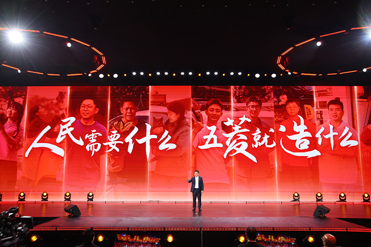“四十年的奋斗历程,我们只认准一个道理,那就是:人民需要什么,五菱就造什么。五菱的奋斗者们将用‘万车如一、万里如一’的品质服务每一位奋斗者,做创富路上——最可靠的工具、最坚强的后盾、最亲密的伙伴!”