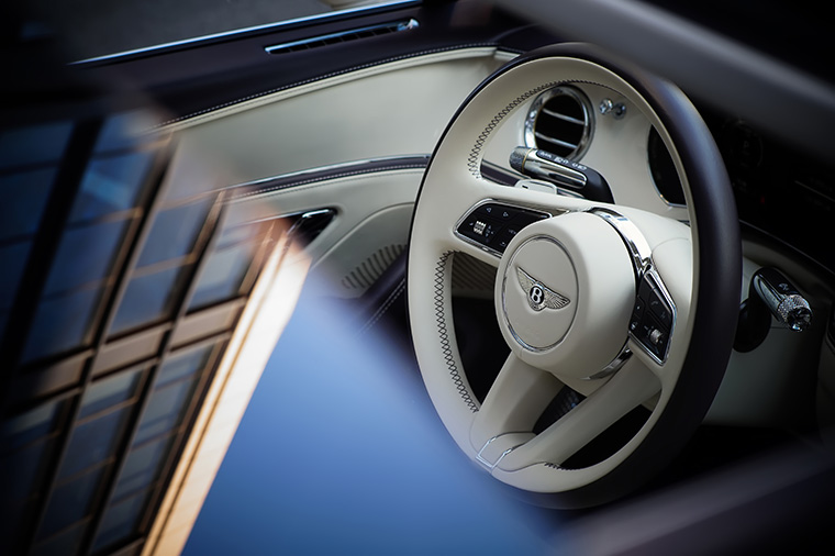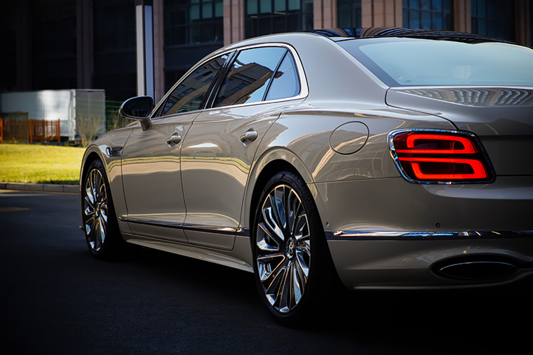 精雕细琢璀璨夺目 出自宾利汽车个性化定制部门MULLINER的每一辆新飞驰MULLINER版都是独一无二的艺术品,从车身线条到内饰细节,无不体现着宾利对完美的执着追求。MULLINER部门专属的“双菱形”前格栅采用菱形镂空设计,灵感源自品牌标志性的绗缝刺绣工艺,与水晶切割效果的前大灯相得益彰,营造出璀璨夺目的视觉效果。 车身轮廓经过精心雕琢,修长而动感的线条从前大灯一直延伸至车尾,勾勒出流畅而富有张力的姿态。22英寸十辐轮圈采用喷漆与抛光镀铬相结合的双色设计,搭配自正式轮毂盖,在行驶中展现出独特的动态美感。