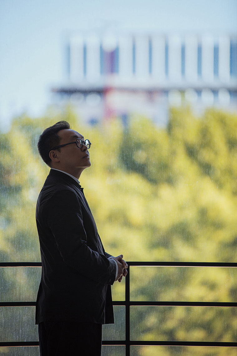 Q:你曾担任多次国家级重大活动的服装总设计师,比如在抗战胜利80周年纪念活动中首创了“铁血灰蓝”这个颜色。能分享一下这个颜色的创作过程和它背后的意义吗? A:做“九三阅兵”设计时,我们其实是在处理一种“对话关系”——今天的人怎么理解战争与和平。我们这代人没有亲身经历过战争,只能通过影像和文字去感受那种残酷与和平的珍贵。 所以在构思时,我们要借助图像、实物去体会80年前人们的心理状态——那些抗战将士、普通百姓,他们在那个年代是怎样的精神面貌。尤其这次我们设计的是广场上青年合唱团的服装,他们用歌声传递纪念的意义,唱《保卫黄河》这样的歌曲。 有意思的是,这些合唱团成员的年龄,和当年抗战的将士差不多,都是二十岁出头。那我们怎么通过服装,表达今天年轻人对历史的敬意?又怎么呈现当年那一代人义无反顾保家卫国的精神?这中间跨越80年的心理对照,很触动我。 后来我们思考,服装要怎么体现中国人的坚毅、民族的凝聚力?我们在天安门这样一个神圣的场域里做设计,空间本身就有很强的仪式感。最初我们成立了五个设计团队,有老师带着青年教师和学生一起做方案。前期是发散的,大家围绕“战争与和平”“历史与青年”这些主题去发挥,最后收集了一两百个方案,颜色也很多样,有红、蓝、绿等等。 后来经过和专家团队、指挥部的多次沟通,方向越来越清晰——主题最后聚焦到“众志成城”。款式是一方面,但最关键的是色彩。因为当年广场的设计用了“丰饶金”“铁血红”“橄榄绿”这三种颜色,如果我们再用同样的颜色,就会被“吃掉”。 于是我们慢慢聚焦到蓝色,从抗战时期军队的服装颜色中提取,但当时的颜色偏灰,更接近天空的色调。我们调了很多次,最后定下“铁血灰蓝”这个名字。这算是方案推进的一大步。 还有一个重要的变化是我们用了渐变——从“铁血灰蓝”渐变到“汉白玉白”。最初设计是男女都渐变,后来在审样时,专家建议男生不用渐变。我们就从渐变中再取了一个灰度,专门用于男装,这样整体就协调了。女装最初是上下分开的衬衫和裙子,后来主设计师建议做成“假两件”的连衣裙,视觉上更整齐,也兼顾了功能性——指挥动作幅度大,这样的设计更利落。纽扣也是专门设计的,金色,上面有长城城垛的图案,和“众志成城”的主题呼应,也形成了这套服装的专属性。 Q:最近主要在忙什么工作? A:今年我最重要的创作可能就是广州十五运的献礼活动,要展现一种区域文化——比如大湾区传统的和当代的对话。时间很紧张,一直在赶进度。我们这次想做些有戏剧感的东西,整体节奏很紧凑。我们首先研究了广州的建筑、非遗手工艺这些元素。比如在传统民居里,你会看到很鲜艳的颜色,但往往用重色如黑色或白色去“压住”整体,让热烈中有沉稳。这种对比很强烈。 我们也关注渔民文化,他们靠海为生,和自然的关系紧密,后来逐渐发展成海上丝绸之路的一部分。所以色彩灵感也来自生活方式、建筑空间这些方面。我们还参考了像香云纱这类传统面料的色彩,希望把千年文明的底蕴带进来。