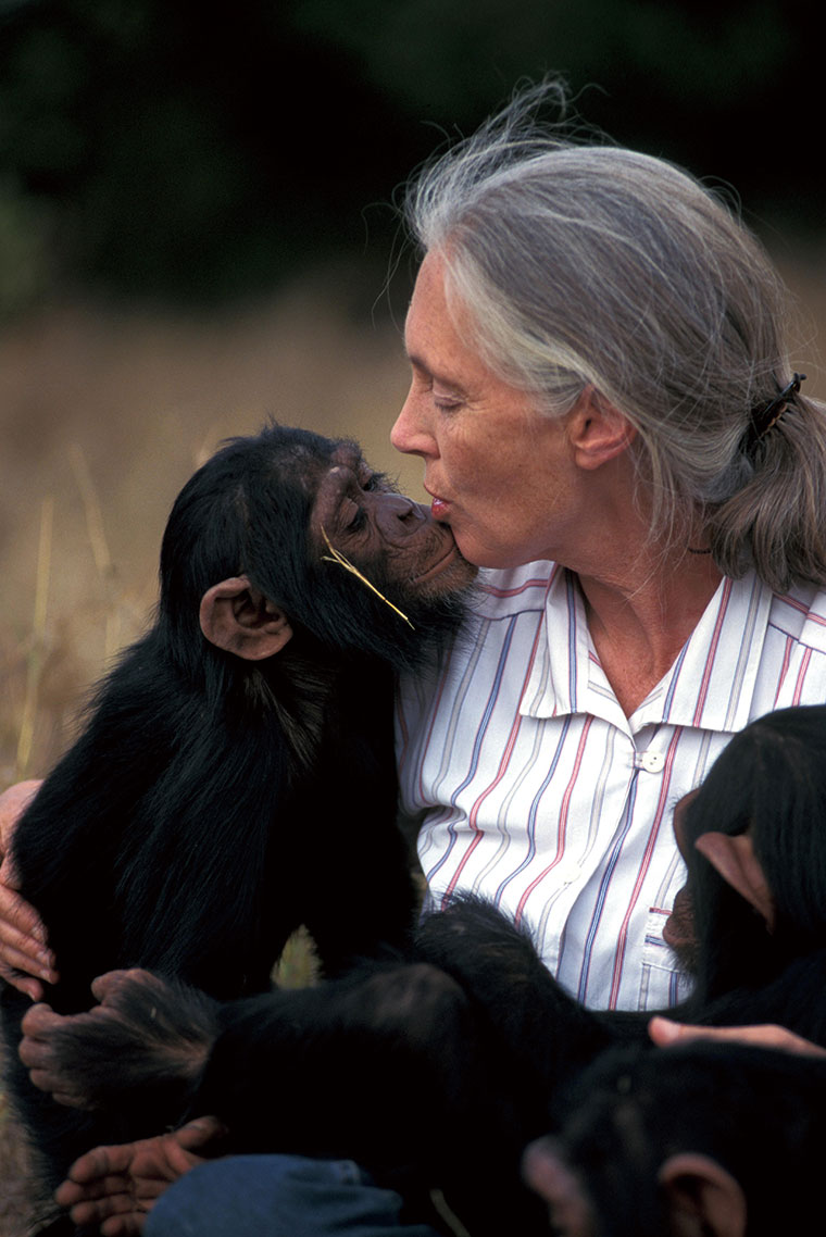 1.当地时间2017年9月23日,美国纽约市,珍·古道尔参加在中央公园举行的全球公民音乐节;2.珍·古道尔与黑猩猩。日期不详;3.珍·古道尔与黑猩猩。日期不详;4.当地时间2019年3月20日,美国棕榈滩市邓巴路150号,珍·古道尔与佩吉亚当斯救援联盟的5岁斯塔福德郡混种犬乔在地板上互动。古道尔此行旨在推广动物领养的积极理念。