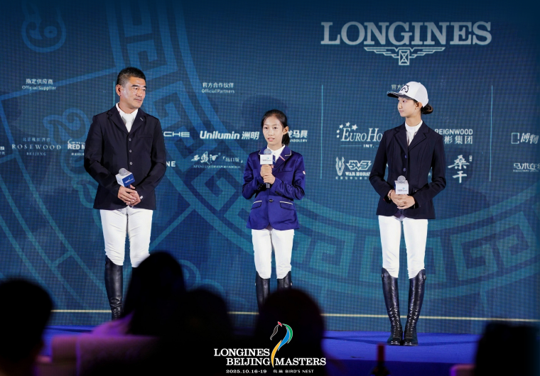 中国马术协会副秘书长兼商务部部长陈九庆先生在致辞中表示,浪琴表北京国际马术大师赛不仅承载着中国马术与世界同频共进的梦想,更成为推动中国竞技水平与国际接轨的重要桥梁。浪琴表中国区市场总监马斯佳女士强调,作为赛事冠名赞助商、官方计时及官方指定腕表,浪琴表将继续以精准、优雅与传统精神,助力大师赛不断书写传奇篇章。这预示本次赛事必将吸引全球的广泛关注与参与,为中国马术事业迈向更高峰开辟新机遇。中国骑手代表曹庆、计菀茹、田纳菲现场互动
