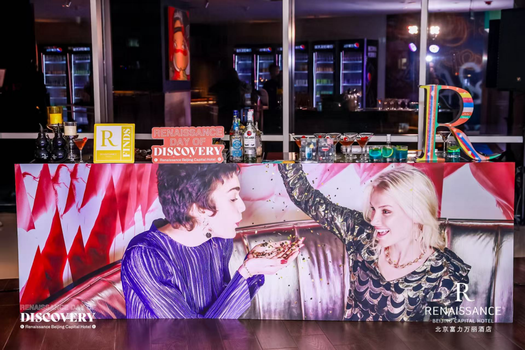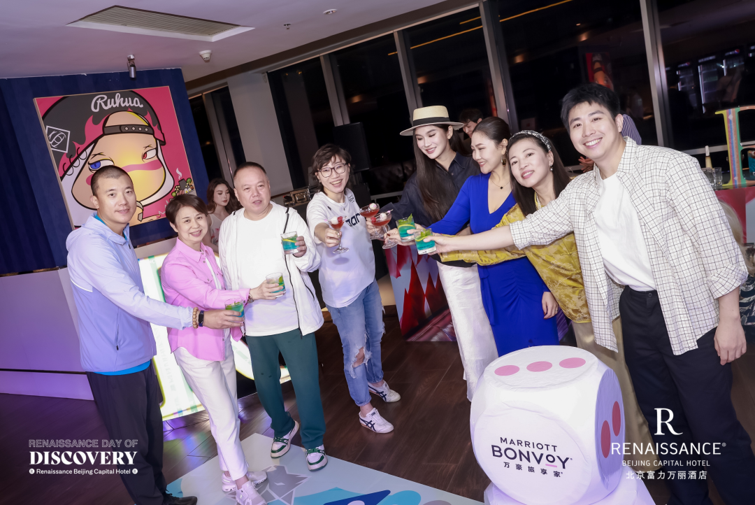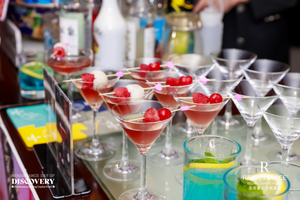 夜幕降临,返回至北京富力万丽酒店4层的大堂吧,延续“发现未见,‘荔’刻出发”品牌推广活动的灵感。客座调酒师现场演绎调酒技艺,巧妙融入万丽酒店大使领航员马伯庸先生的文学作品《古董局中局》、《长安的荔枝》,通过特调鸡尾酒“绿漪生”、“龙吟荔阙”、飞行棋游戏等体验互动,点燃探索之夜的想象力与好奇心。