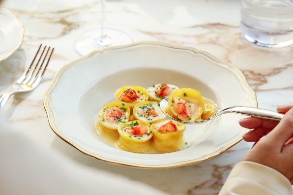 驰享通途,连续两晚入住北京宝格丽酒店,可尊享由酒店提供的豪华轿车往返于机场或火车站尊宠礼遇,从容穿梭繁华都市,直达亮马河畔,于都市绿洲感受宝格丽当代意式生活艺术。沉浸意大利奢华与东方美学交融的匠心居旅空间,客房内部装饰卡拉卡塔大理石桌面,以自然纹理和光泽,彰显意大利工艺的精致优雅;300密度高织品床品,赋予居家般的安宁与柔软。更特别配备由香水大师Jacques Cavallier为宝格丽专属调制的香氛与洗护用品,馥郁气息惬意萦绕,浸染秋日旅途每一刻。意式手工饺子配红虾,黄油,柠檬及沙葱
