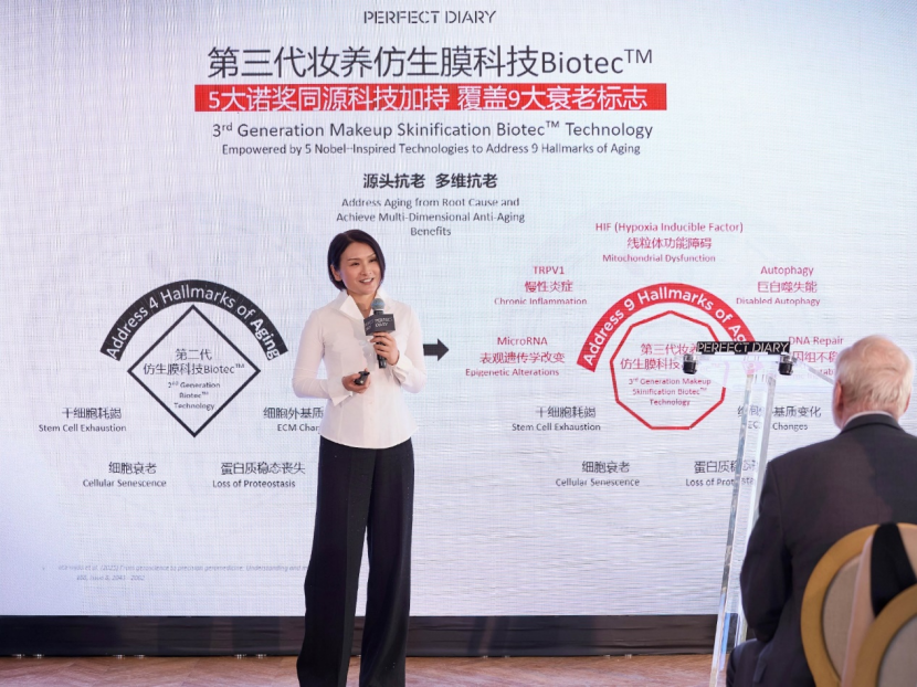 2025年,完美日记重磅亮相第35届IFSCC大会(国际化妆品化学家联合会大会,被誉为“化妆品界诺贝尔奖”),携第三代妆养仿生膜科技Biotec