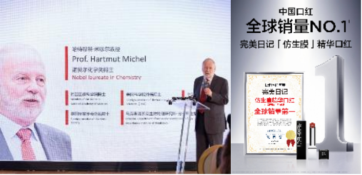 诺贝尔奖教授Hartmut Michel高度肯定完美日记将前沿科技融入日常抗衰的突出成效,并特别指出,“完美日记基于诺贝尔奖的同源科技,正在让前沿科技走进日常生活,为消费者带来更科学、更高效的抗老体验”。沙利文机构也于现场为完美日记「仿生膜」精华口红颁发全球销量第一认证,标志着国货美妆科研实力再获国际权威机构认可,其市场领先地位得到有力印证。