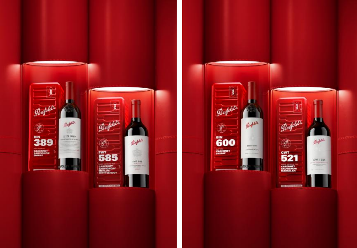 “解锁风土 一起奔富”主题系列包括: 红色集装箱礼盒:内含澳大利亚产区Bin 389赤霞珠设拉子、法国产区FWT 585赤霞珠梅洛小维多、美国加州产区Bin 600赤霞珠设拉子和中国产区CWT 521赤霞珠马瑟兰。