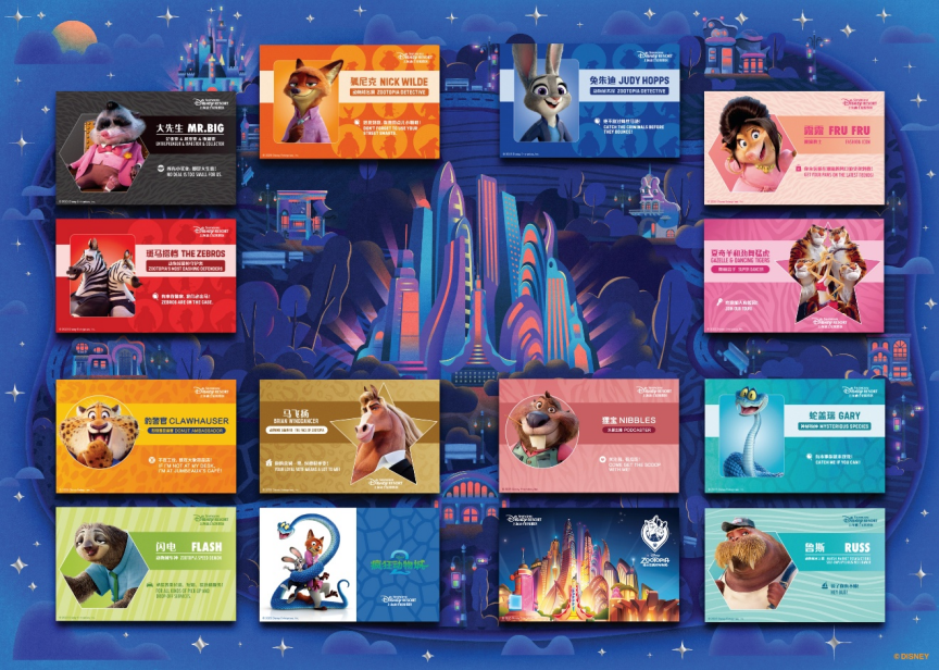 《疯狂动物城 2》冒险之旅的惊喜不止于主题园区,更贯穿上海迪士尼度假区的整体游玩体验。主题欢庆期间,乐园将限时推出14 款限量版主题门票——集结10多位备受喜爱的动物城角色与电影续作中的新朋友,并以他们的动物城名片或标志性视觉精心设计。无论是跟随朱迪和尼克的脚步化身动物城警局警员,或是像大先生一样运筹帷幄,每张门票都诚邀游客来到上海迪士尼乐园,并踏入哺乳动物大都会“疯狂动物城”,开启全新探索之旅。2025年11月19日起,游客还可登录“动物城疯狂探案”微信小程序,在探索园区的同时,追踪线索、发现彩蛋,解锁隐藏乐趣。