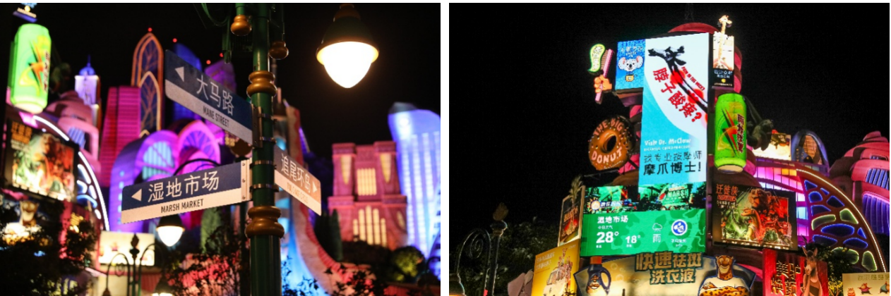 从寒冷的冰川镇、干旱的撒哈拉广场,到葱郁的雨林区和精巧的小型啮齿动物镇,疯狂动物城的每个区域都独具特色,共同构筑起这座广袤多元的大都市。即将上映的《疯狂动物城2》将解锁一个全新区域——熙熙攘攘、水道纵横的湿地市场。与此同时,上海迪士尼度假区也通过创意合作,第一时间将这一全新故事版图在主题园区呈现。湿地市场的踪迹早已悄然暗藏——无论是指向湿地市场的新路标,还是包含隐藏寓意的海报、焕然一新的广告牌,以及大马路沿途的新版城市地图,游客可以在逛游之中发现这些巧妙融入的点滴线索,逐步揭开这一区域的神秘面纱。