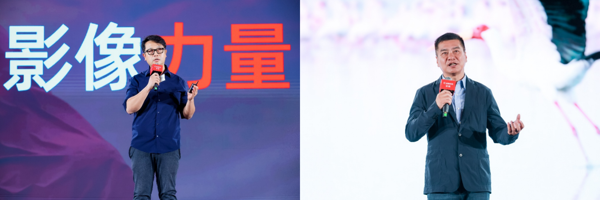 佳能股份有限公司副总裁执行董事、影像事业群负责人户仓刚以及佳能(中国)有限公司副总裁平野英治与到场嘉宾共庆佳能EOS 5系数码相机诞生20周年