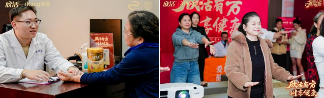 现场,资深营养师与中医师围绕“健康防护”展开解析,既串联起伊利欣活纾糖膳底配方奶粉“药食同源+现代科技”的产品逻辑,也明确了爱康国宾检测服务与产品干预的互补价值。中医号脉问诊、八段锦教学等互动环节进一步丰富体验维度,最终形成以伊利欣活的每日滋养为核心、爱康国宾体检为专业支撑的健康服务闭环,不仅让“防大于治”理念深入人心,更树立了“品牌主导、机构协同”的健康服务新范式。