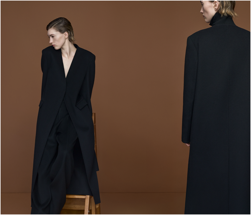 绵羊毛超长羊绒大衣,通过利落的廓形与解构式裁剪,将“体积”写成宣言,既是建筑式的支撑,也是情绪上的裂缝——让温暖与锋利同时进驻身体。羊绒不再只是“御寒”,而成为女性自我叙述的立体标点。戏剧化的量感,是对“被观看”的坦然承接,更是对“被定义”的主动撕毁。搭以配套的经典直筒裤则以克制回应张扬。
