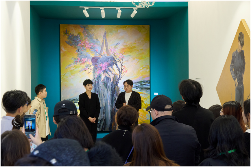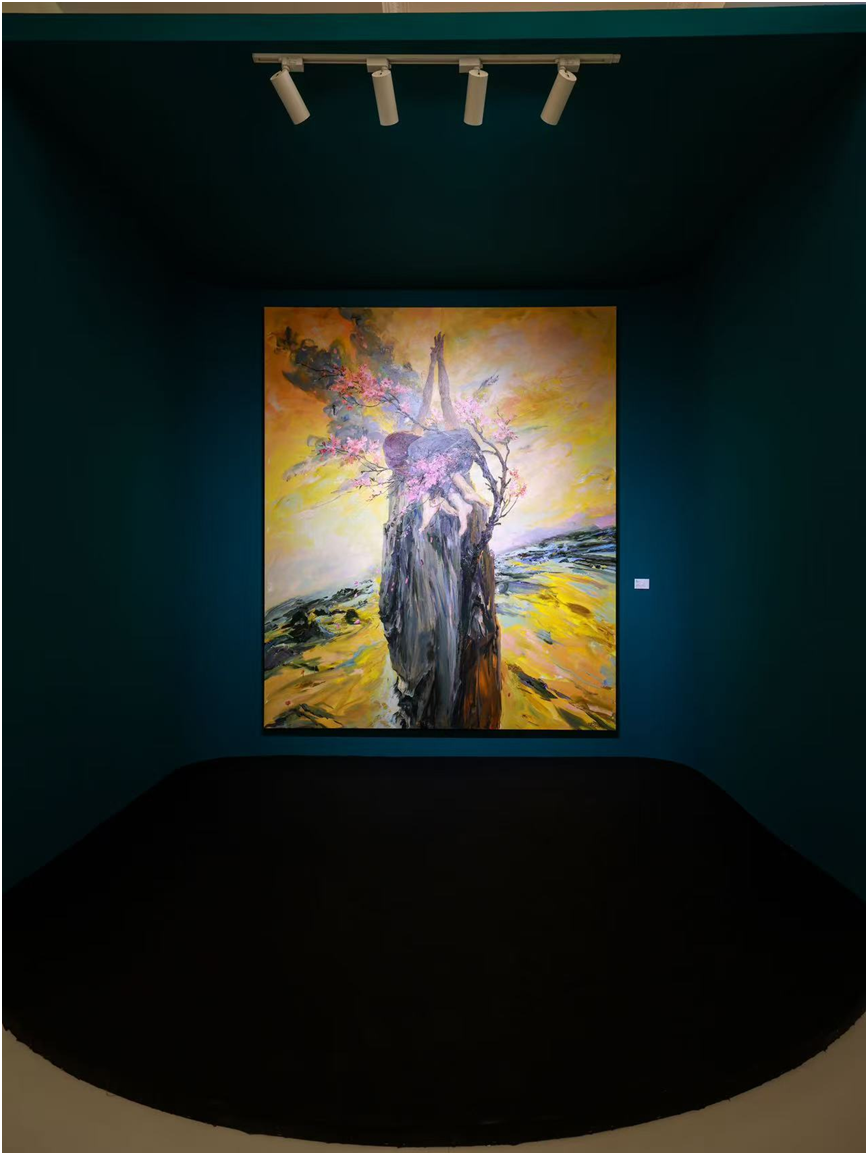 展区中央呈现的是喻红的两幅代表作品:《爱情岛》与《激流》。喻红谈到:“《爱情岛》的画面是安静、柔和,甚至有种幸福的气息,但爱情在人心中的状态,是浪漫、美好、排他,又面临险滩的。如果说《爱情岛》是时间的凝固,那么《激流》是时间的流动:那些树干像人的骨骼,被浪冲刷着,那就是生命的形状。”