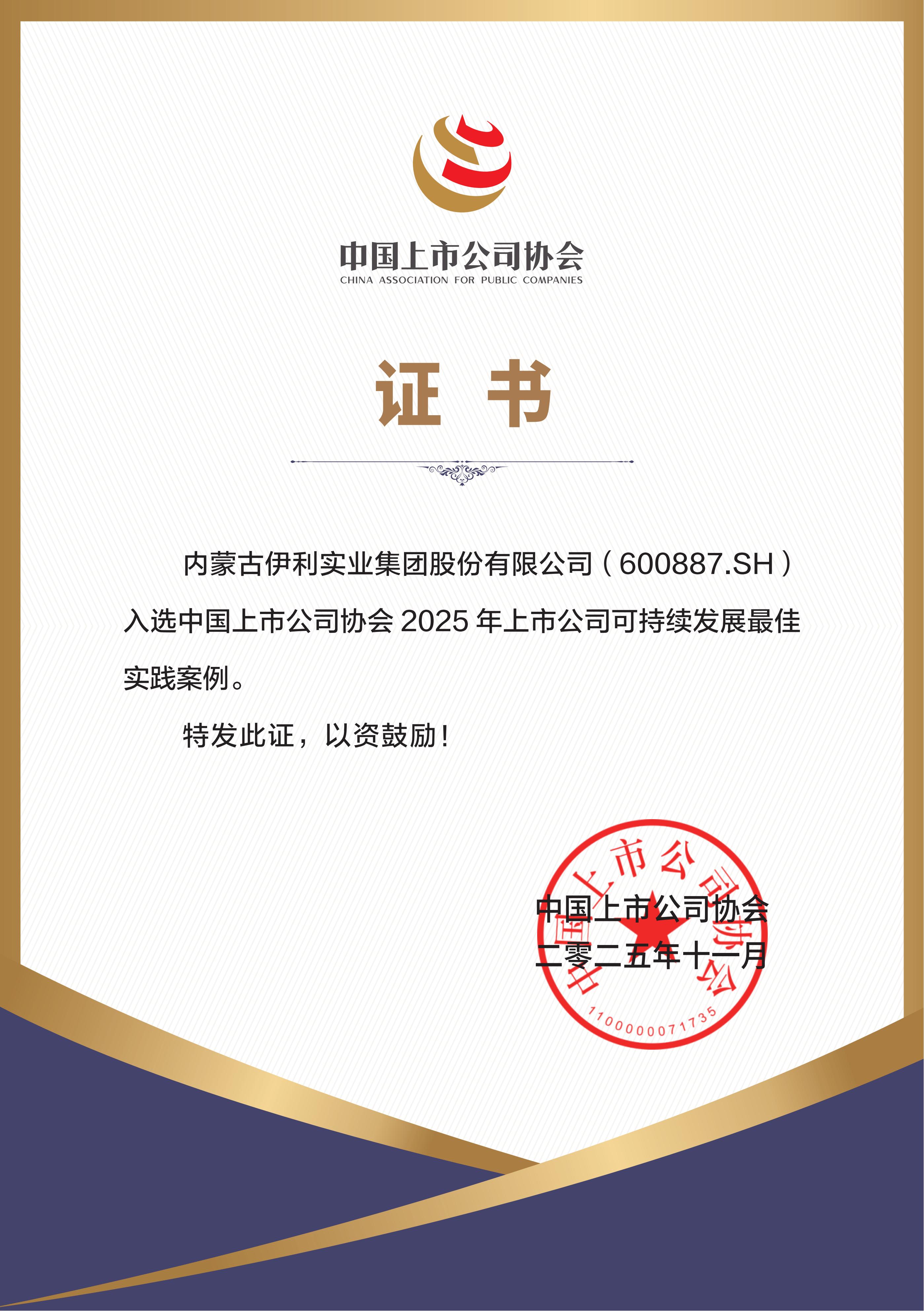 入选中国上市公司协会“2025年上市公司可持续发展最佳实践案例”