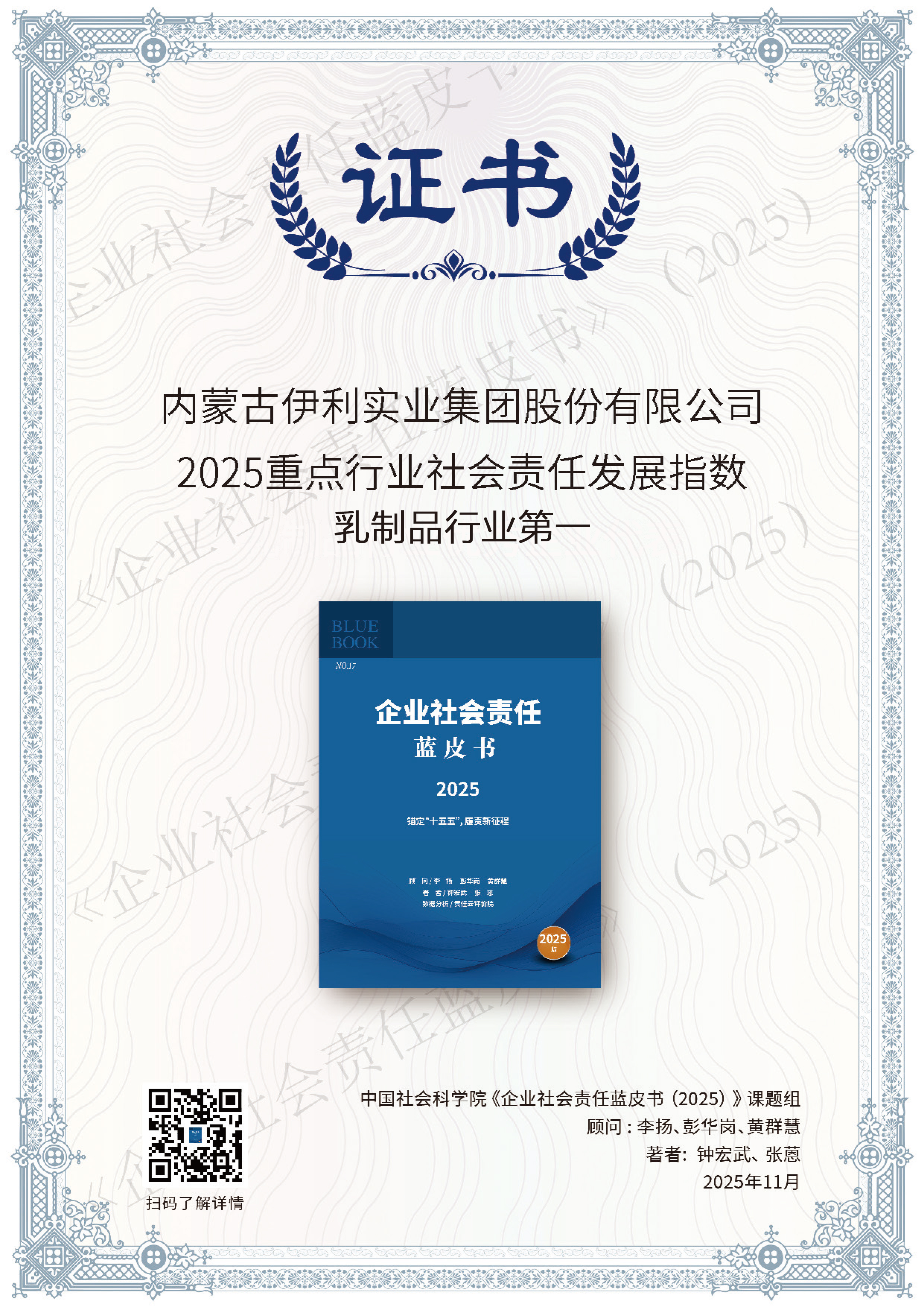 11月20日,“ESG中国・第八届北京责任展”在北京举行。本次盛会由中国企业改革与发展研究会、责任云研究院联合主办,以“锚定‘十五五’,开启履责新征程”为主题,共探新时代企业履责的实践路径和价值担当。会上,伊利集团获评中国社科院《企业社会责任蓝皮书(2025)》“乳制品行业社会责任发展指数第一”,这也是伊利连续第8年摘得此桂冠。伊利这支中国消费品龙头股,正在用扎实的业绩与清晰的战略,成为投资者新时代的“财富好搭子”,探索出了“国民奶箱”“全域营养搭子”的价值创新之路。