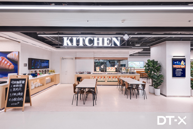 Market Place高级超市,秉承“样样动心,天天惊喜”的经营理念。超市内经营品种丰富的品质蔬果,源产地直送的新鲜肉品以及来自世界各地的美酒美食。 Market Place寻遍全球好物,特设品种丰富的勃艮第葡萄酒专区、直采西班牙黑标火腿、美国及意大利原产美味奶酪,现场分割挪威冰鲜三文鱼。为不断提升高品质高性价比,设立了烟火气十足的主食档口,以优质原材料现场制售,保障日日鲜美。Market Place致力于为DT-X顾客提供多种多样的美食搭配以及生活方式的体验。 充满独创性的BHG Kitchen,是Market Place高级超市的“表演厨房”,Kitchen每天选用Market Place内新鲜、优质的食材和原料,现场现制,做出好的美味餐食。特邀米其林星级厨师指导,推出当日鲜肉特制咖喱牛肉饭和鲜切三文鱼POKI饭等拿手好菜,更有秉持健康至上的特色蒸菜和每日例汤,倡导少油少盐的健康饮食。从源头开始,提供每一天每一餐的品质生活方式。