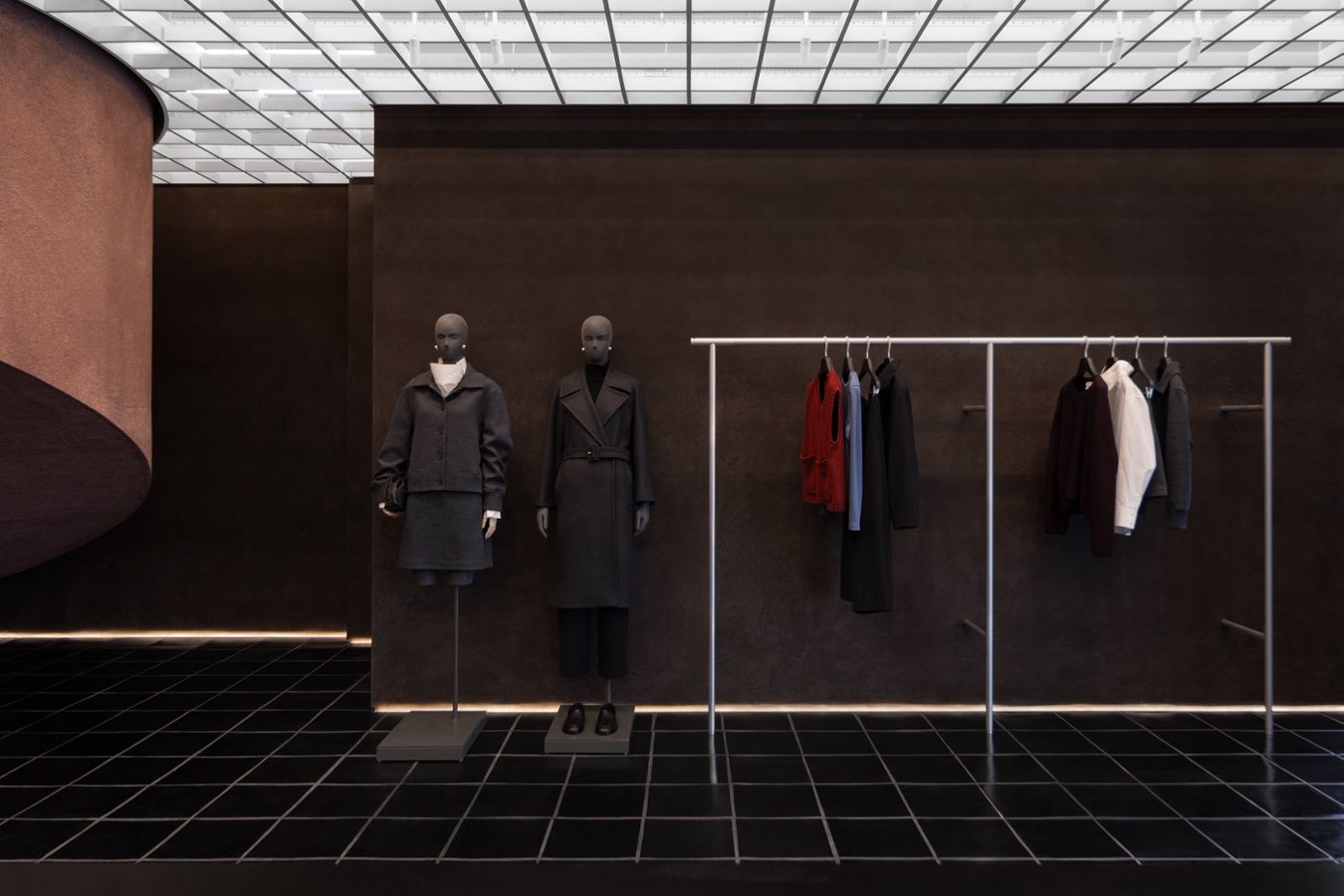 COS 携手SINGCHAN DESIGN(由设计师陈星宇创立)及多位本土艺术家共同构思店铺设计,开启一场过往与当下的对话。这个全新空间从北京深厚的历史中汲取灵感,从紫禁城的金砖(亦被称为“京砖”)、传统建筑的几何中式格栅结构,再到光影的诗意交织与标志性的朱红宫墙,这些历久弥新的经典象征被巧妙转化为当代空间语言,为COS的最新系列构筑展示的舞台。