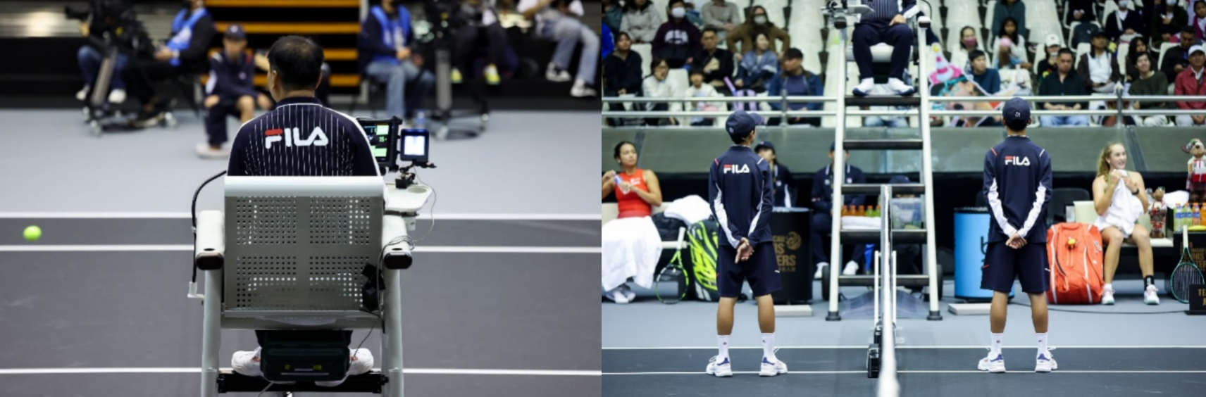 赛事现场的工作人员、裁判和球童统一身着FILA赞助的网球专业赛事服装