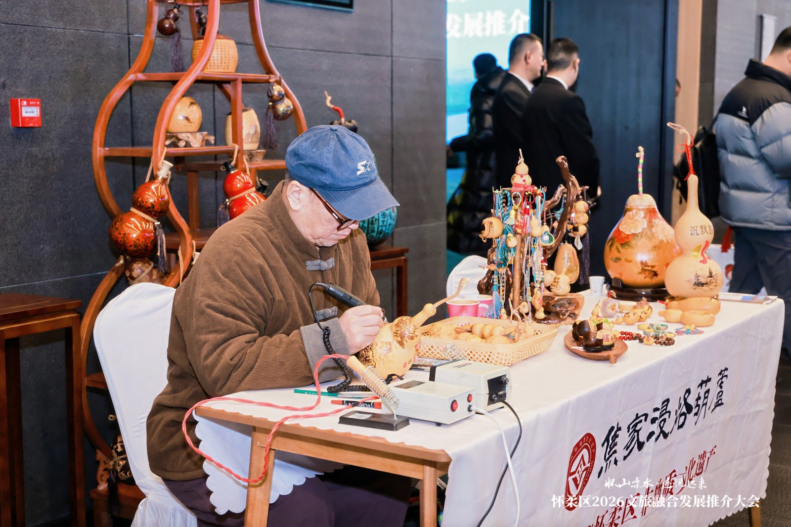 在主题展览现场,14个镇乡的130余种特色产品集中亮相,涵盖智慧机器狗、农业机器人等科创成果,非遗手作、长城主题文创等文化产品,以及优质农产品等,全方位立体展现怀柔生态之美、文化之韵,也彰显了科技赋能文旅的创新成果,让与会嘉宾全方位、多角度感受怀柔大文旅融合的丰硕成果与独特魅力。