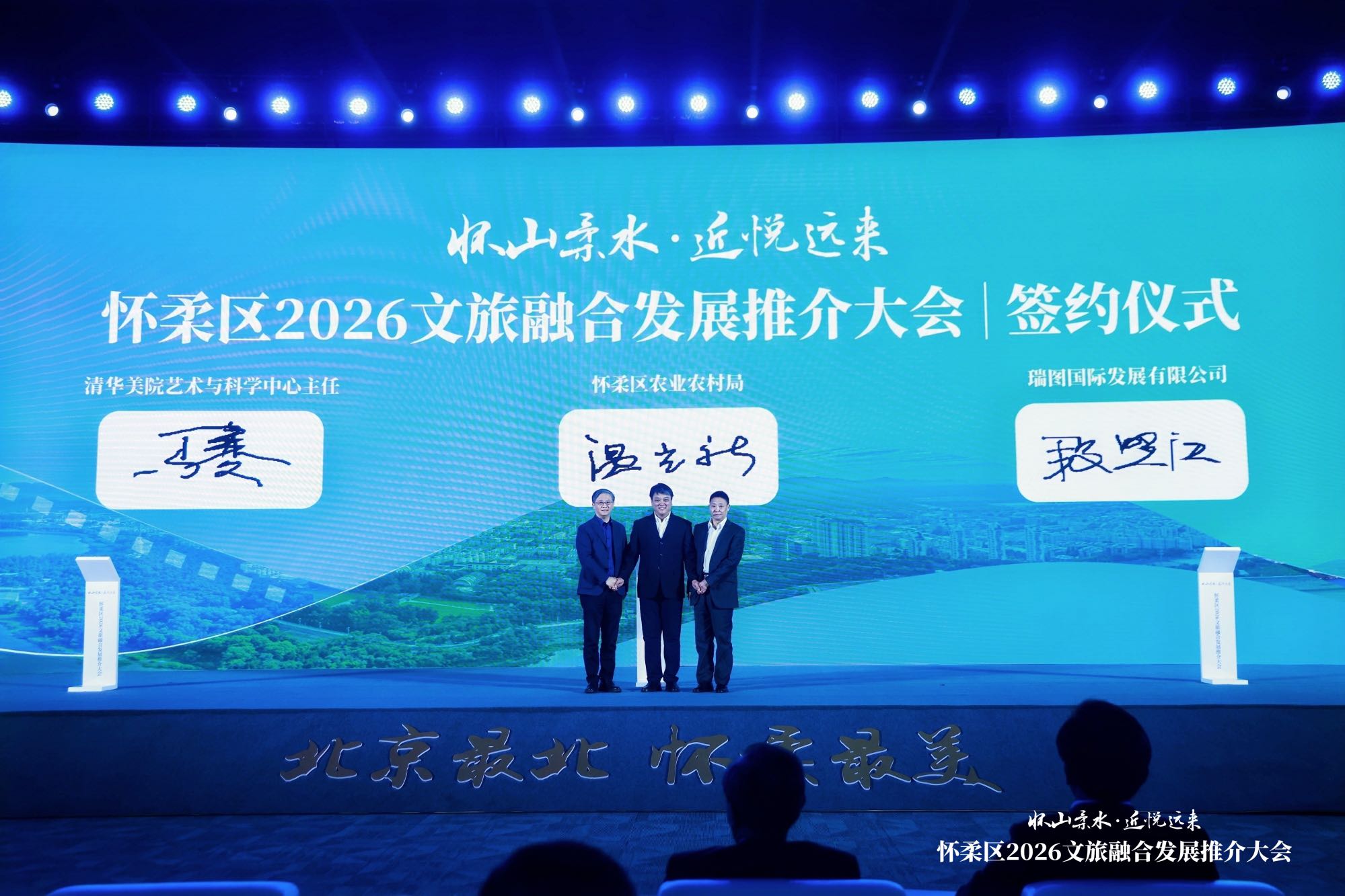 在“合作共赢・未来可期”篇章,12项战略合作集中签约。怀柔区分别与京东集团、首旅集团、中央民族大学、腾讯科技(北京)有限公司、奥特莱斯集团等著名企业、高校达成合作,合作内容覆盖文旅开发、科技赋能、媒体宣传、农业文旅、体育赛事等多个融合领域,将为怀柔大文旅注入多元发展动力。
