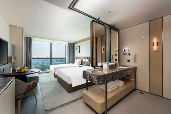 欢聚之所:长春高新假日酒店以“欢聚”为灵感,融入活力色彩与温暖香氛,令人欢欣愉悦,全景落地窗营造明亮欢快的松弛氛围;客房配备个性化设施,舒适的居停空间兼顾功能与美学。