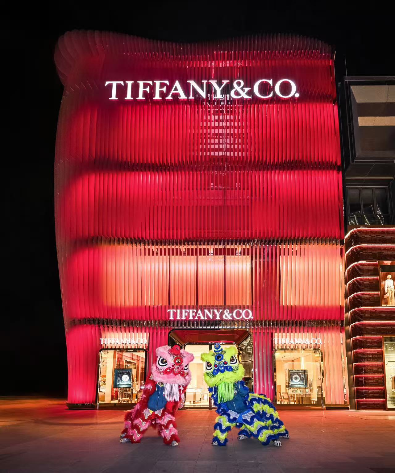 2026年1月29日晚,Tiffany & Co. 蒂芙尼北京三里屯太古里旗舰店首次以象征喜悦与祝福的“中国红”点亮建筑外立面,仿若一盏美丽的“红灯笼”,融入三里屯太古里“潮狮亮相——新年醒狮派对”的浓厚新年氛围中,致敬中国传统文化。