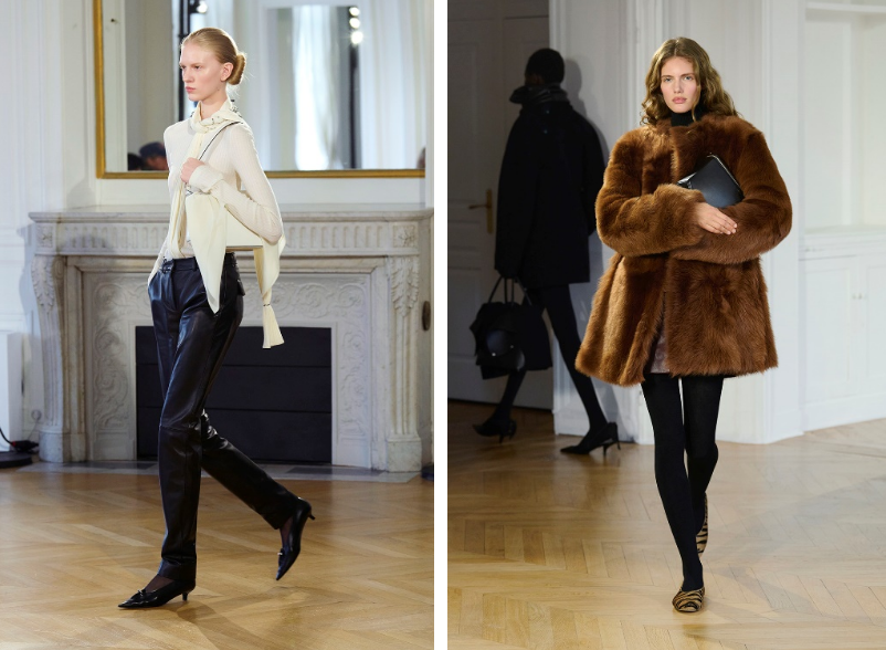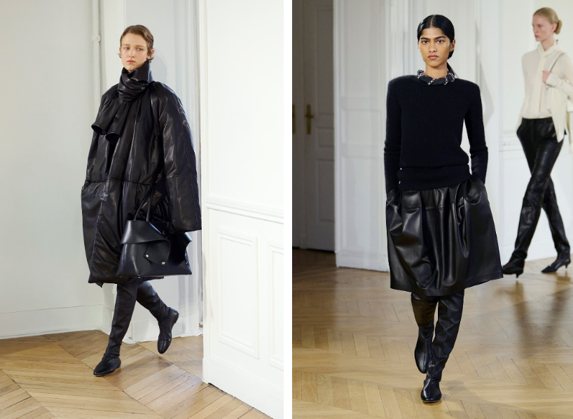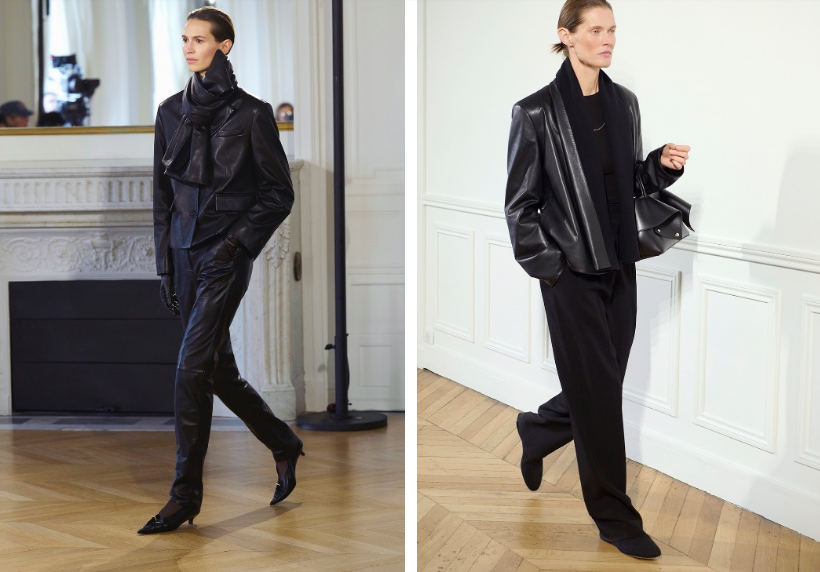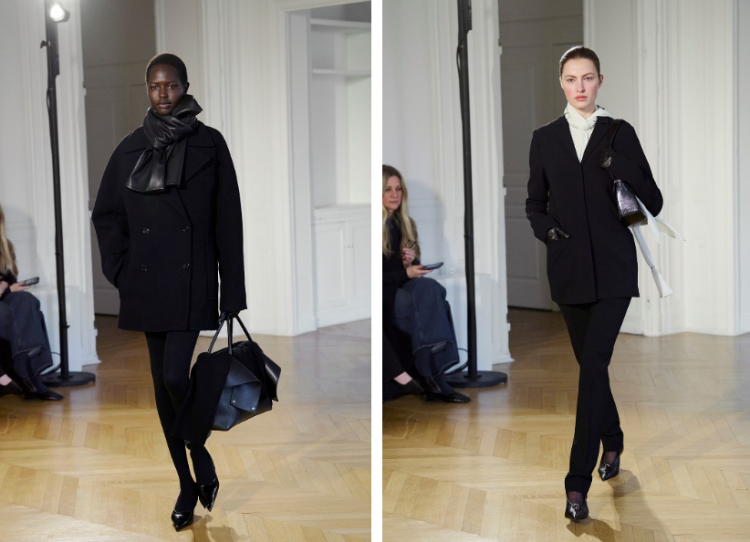 TOTEME 2026秋冬系列,以瑞典风格的精致美学为基调,演绎出一场充满女性活力的创作。运动感与衣橱经典单品通过雕塑感廓形焕发新意:从短款羊毛海军外套的茧型比例,到罗纹羊毛吊带裙、运动感西装以及美利奴与平针织叠搭的修身魅力。看似简约的黑色调面料,点缀樱桃红亮色,被赋予了出乎意料的戏剧张力:内衬羊绒的柔软皮革,罗纹针织与粘纤羊毛的质感形成鲜明的对比。都市感鞋履彰显犀利风格,从镂空尖头高跟鞋,到丝带后绊带凉鞋,再到适配多场景的针织鞋面的粗跟芭蕾舞鞋。本季的包袋设计致敬都市摩登,带有机车元素的新款Mercer 托特包精彩亮相,与结构感十足的单肩包以及饰以装饰链条的T Lock斜挎包一并登场。秉承TOTEME一贯精神,每一套造型都是对个性的邀约,为富有内涵的现代女性打造专属衣橱。