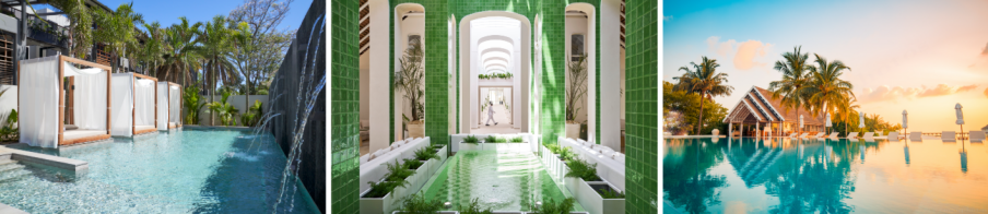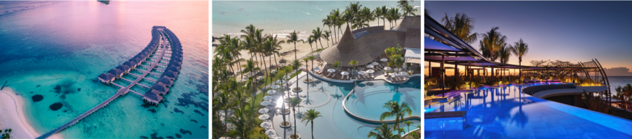 毛里求斯美岸丽世假村的大堂以及马尔代夫南阿里环礁丽世度假村的Senses泳池