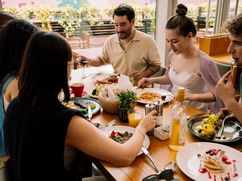 自助餐台与酒水:刚刚好的丰富 在 FEAST 标志性的长自助餐台上,前菜、熟食、沙拉、芝士与甜品一字排开,让喜欢尝鲜的食客可以小份多样地品尝,也照顾到偏爱经典口味的宾客。饮品方面,从气泡酒、葡萄酒到啤酒与软饮,多种选择搭配春季菜品,适合在午后不慌不忙地续杯。 在提供足够选择的同时,FEAST 也鼓励「按需取用」,以轻松、不浪费的方式享受一顿舒适的周末早午餐。亲子友好:大人与小朋友共享周末节奏 延续北京东隅一贯的家庭友好氛围,FEAST 早午餐为携带儿童的家庭保留了轻松而实用的空间设计:独立儿童玩乐区配备滑梯、海洋球等设施,小朋友可以在自己的小天地里尽情玩耍;自助餐台准备炒蛋、薯条、鸡肉条、意面等儿童熟悉的味道,也鼓励小朋友和父母一起分享春季新菜。 大人可以在窗边慢慢聊天、看着楼下太古里的来往人群,小朋友则在视线范围内安心玩耍,让周末早午餐从一顿饭,自然延伸成一家人的春日时光。