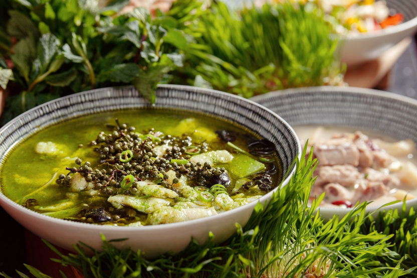 春飨 A Bite of Spring:一口一口,都是春天 从3月起,每周六与周日11:30至15:00,FEAST 将周末早午餐菜单换上春日新装。开放式厨房、落地玻璃与长木桌把餐厅变成适合久坐的聚会场,宾客可在自助餐台轻松取餐的同时,享用一份由厨师现场烹制、单点出品的春季主菜。主菜以西式烹调为基础,融入云南、贵州、四川等地区灵感,将时令绿叶、香草与酸辣元素自然铺陈在盘中,让肉类主菜也带着清爽的春天气息。所有主菜均为现点现做,并以精致摆盘送至餐桌,让每位宾客在自助的随意之外,都拥有一道「只为自己准备」的主菜小仪式。