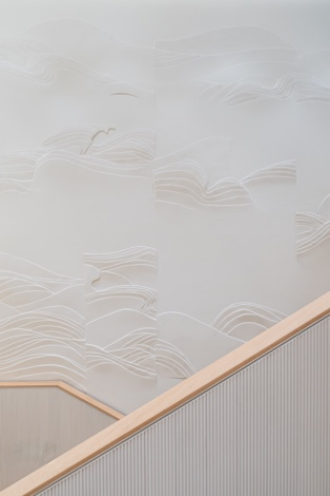 目光所及,由 Andrea Tognon Architecture 建筑设计事务所量身打造的全新外立面,以“水”与“光”为核心设计脉络,成为品牌美学的鲜活表达。树脂与玻璃层叠铺陈,勾勒出富有深邃意境、通透质感与流转光影的层次肌理。天光朝暮变幻,外立面便漾起微妙的律动与流动之美。这一巧思将入口玄关化作灵动的建筑语言,既与北京的城市脉搏深情呼应,又恪守着Max Mara一脉相承的意式严谨美学。店铺设有两处独立入口,让宾客自步入的瞬间,便开启一场专属的美学之旅。