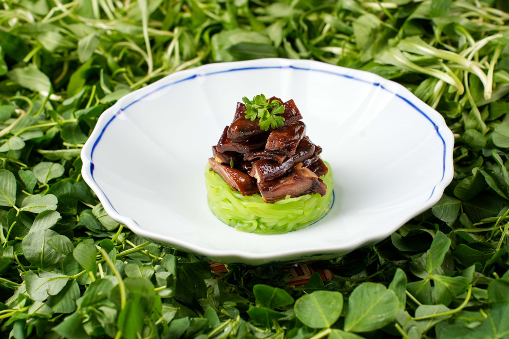 晚宴菜单亮点纷呈:除前菜外另有三道主菜由杨小虎师傅呈现:苋菜汁龙虾葱油饼,取绍兴经典风味苋菜梗汁做底,醇香独特、越品越浓。搭配酥香小葱油饼,文火慢煎至外皮金黄松脆、葱香扑鼻。内馅藏入鲜嫩弹牙的小青龙肉,海鲜鲜甜与苋菜梗汁的醇厚风味相融,一口酥香、满口鲜醇。传统绍兴滋味与海鲜创意碰撞,外酥里嫩,风味别致,是极具江南辨识度的菜品。 绍兴梅干菜碳烤雪花牛肉配春笋,梅干菜的咸鲜裹挟着木质炭火的醇厚,丝丝缕缕渗入雪花牛肉的肌理,油脂与香气在高温下慢慢交融,每一口都脂香饱满、回味悠长。搭配应季的春笋,清鲜解腻,既中和了肉的丰腴,又添一抹江南春日的清爽,浓淡相宜,满口皆是烟火与山野相融的本味。 油㸆东海白鲳鱼配草头,通过油㸆工艺激发出白鲳鱼的极致鲜甜,鱼肉软嫩无刺,搭配清香草头,鲜而不腻,温润雅致。 袁超英师傅的非遗北京烤鸭,甄选优质北京填鸭,以挂炉果木明火精烤,历经晾皮、打糖、控温翻烤等古法工序,鸭身呈现诱人枣红亮泽。鸭皮薄脆如琉璃,入口咔嚓爆香不腻;鸭肉细嫩多汁,裹挟淡淡果木清香,搭配荷叶饼、甜面酱等经典辅料,一口尽是京味经典与非遗匠心。 袁振威师傅的佛门宝鼎,集山野鲜灵于一鼎,慢火细炖出本真风味,汤汁鲜醇,食材软烂,每一口都是对时令鲜味的极致尊崇。 2026年4月1日至19日,北京香格里拉香宫中餐厅,无需远行,即可赴一场江南春日之约;4月3日限定名厨联袂晚宴,更是不容错过的品鉴良机。诚邀新老食客莅临,一同沉醉于粤海深情、江南雅韵与京味非遗的三重风味盛宴,共赴春日舌尖之约。