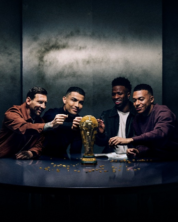 梅西、罗纳尔多、维尼修斯与姆巴佩共同拼搭乐高®Editions FIFA世界杯™奖杯,以乐高®玩乐的方式庆祝足球文化
