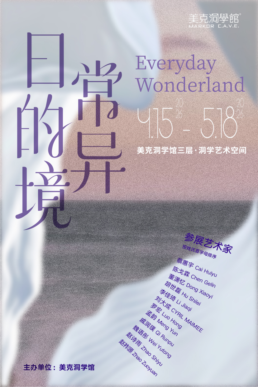 2026年4月15日,“日常的异境”艺术展在北京美克洞学馆三层洞学艺术空间正式开幕,展览将持续至5月18日。本次展览汇聚蔡蕙宇、陈戈霖、董潇忆、胡世磊、李佳琦、刘大成、罗宏、孟韵、戚润璞、魏语彤、赵诗雨、赵祚源等12位来自中央美术学院的青年艺术家,以多彩的个体视角,在“日常”与“异境”的张力之间开启一场对生活的诗意重构。