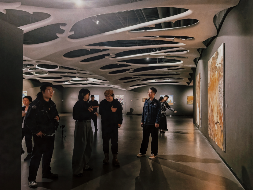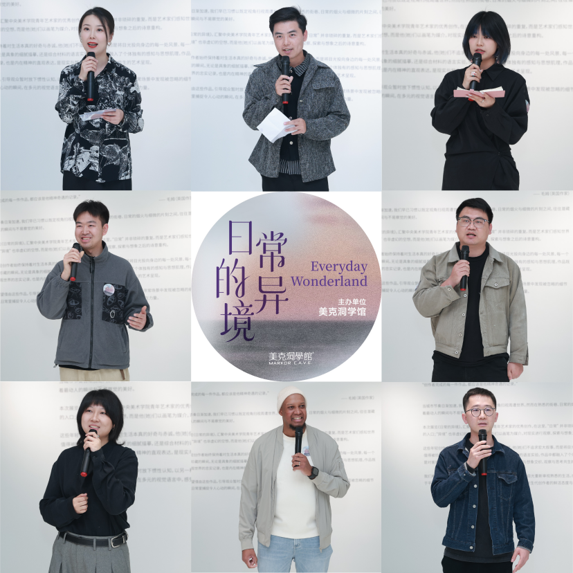 开幕仪式上,美克文创总经理鲁真真女士代表主办方美克洞学馆致辞,对到场嘉宾表达了热烈欢迎,并阐述了本次展览的初衷与愿景:“首先,由衷感谢中央美术学院喻红、袁元、夏理斌三位老师倾情推荐本次参展青年艺术家。正如展览主题‘日常的异境’所表达的,他们以独特的艺术感知,用画笔与多元综合材料,将日常的细碎化为有温度、有思想的作品。美克洞学馆致力于打造城市公共文化空间,扶持青年艺术、为年轻创作者搭建展示与交流的平台也是我们的社会责任。让艺术与生活对话,为每一份赤诚才华提供绽放的天地,让更多人看见青年艺术的光芒。”随后,参展艺术家陈戈霖、董潇忆、赵祚源、罗宏、赵诗雨、刘大成、戚润璞各自分享了自己的创作心路、对“日常的异境”这一主题的理解,以及对本次展览圆满开幕的祝福。致辞环节后,嘉宾们步入展览空间,开启了一场充满灵感碰撞的艺术探索之旅。