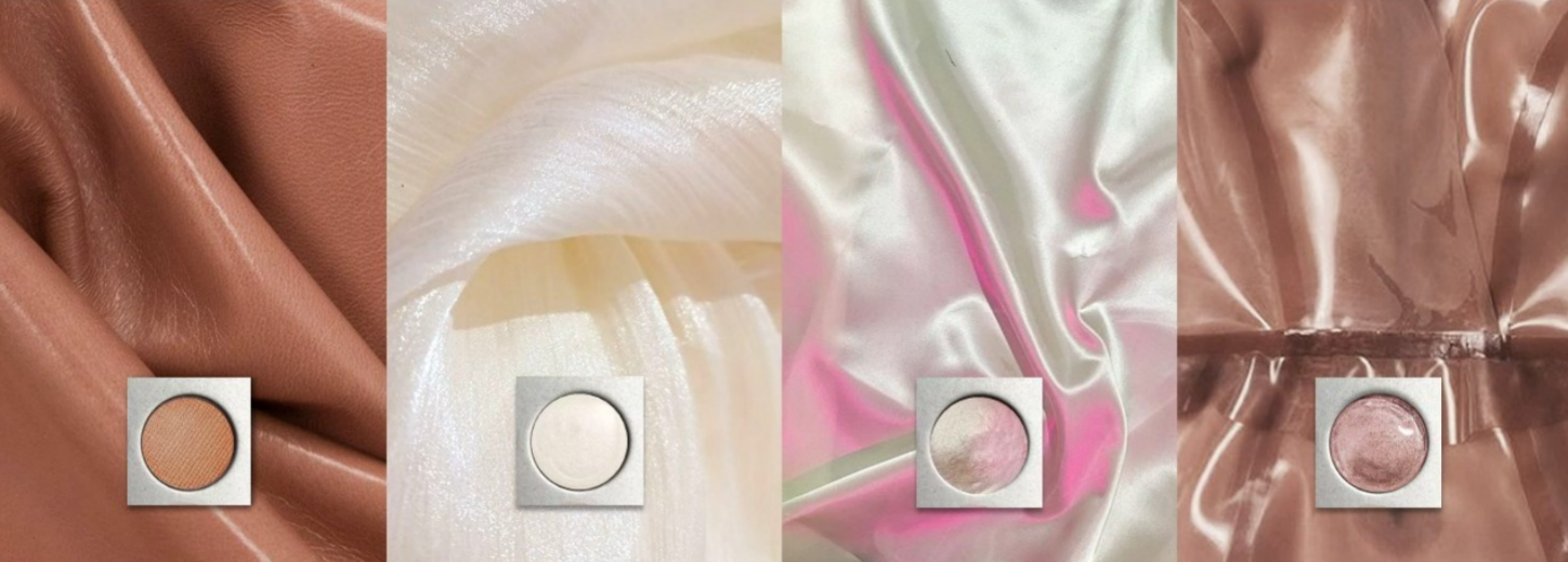 ▲麂皮绒雾质地 ▲欧根纱细闪质地 ▲幻彩纱偏光质地 ▲缎光感膏体质地