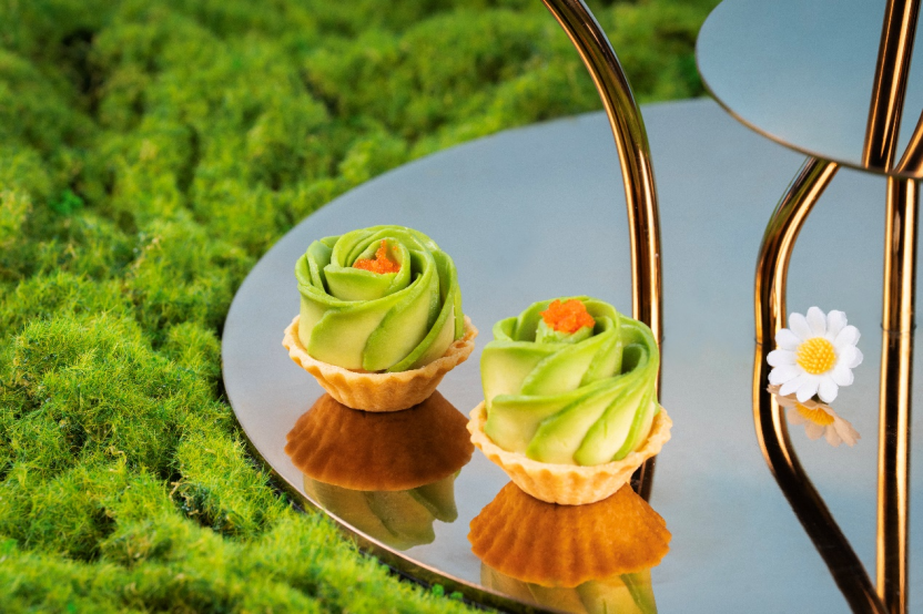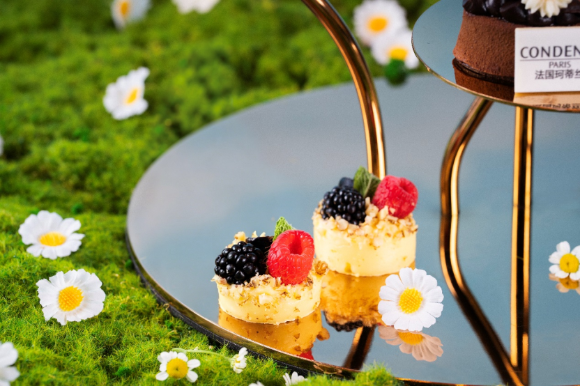 牛油果鸡肉慕斯塔,绵密柔润的牛油果,交融嫩滑细腻的鸡肉慕斯,入口柔润顺滑、清淡雅致, 营养与风味兼具。气质纯净自然、温润柔和,在舌尖演奏雏菊纯净自然的花语,亦贴合法国珂蒂 丝以自然之力、滋养健康之肌的品牌初心。 春风入怀,花香绕肩,赴一场灵感满溢、仙气缭绕的法式约会。于北京金茂万丽酒店雅致空间, 邂逅法国珂蒂丝美白焕亮美学,让舌尖沉醉于自然本味,让肌肤沉浸于植愈焕亮,在一茶一点间, 慢享这份限定的温柔与诗意。 “云栖花涧”联名下午茶 价格: 大堂吧款,人民币 368/套 行政酒廊款,人民币 468/套 地点: 大堂吧,酒店 1 层