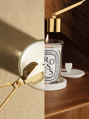Diptyque为经典香氛蜡烛量身设计了一套细致的保养准则,确保蜡烛在使用过程中始终保持完美的燃烧状态。专属配件是精细保养必不可少的助手:烛芯修剪器及灭烛罩可确保蜡烛保持理想的燃烧状态。 Diptyque在此呈献的,远非一份简单的责任——它是一个契机,借由这份仪式感,让您与器物、与时间、与美建立全新的联结。篇章四致敬光影,艺术家居描摹瞬息