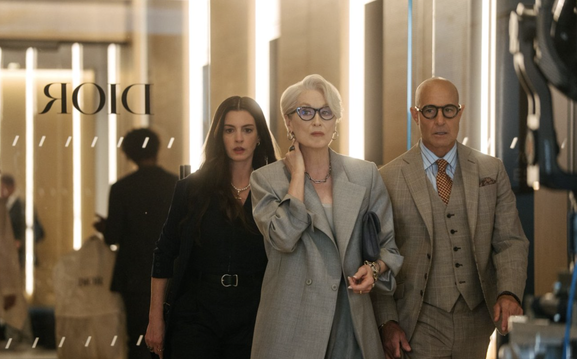 而梅丽尔・斯特里普饰演的米兰达,依旧是时尚帝国不容撼动的女王,却少了几分前作的尖锐凌厉,多了岁月赋予的沉静与从容。她不再靠强势气场压制一切,而是将锋芒藏于优雅举止之中,在时尚行业的变革浪潮里,坚守着自己对时尚的热爱与执念。IMAX 大银幕将她的每一个微表情精准放大,眼神里的坚定、面对困境的隐忍、对行业的敬畏,让这个角色跳出了 “时尚女魔头” 的单一标签,展现出职场强者不为人知的柔软与坚守,这份层次丰富的演绎,堪称近年时装电影里最具说服力的表演。