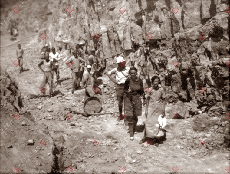 一九三四年八月,林徽因与费慰梅(中)、费正清(左侧村民身后)在山西考察。