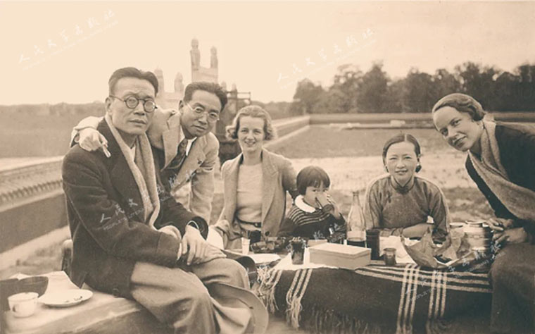 一九三五年,林徽因与梁思成、梁再冰、金岳霖、费慰梅等摄于天坛。
