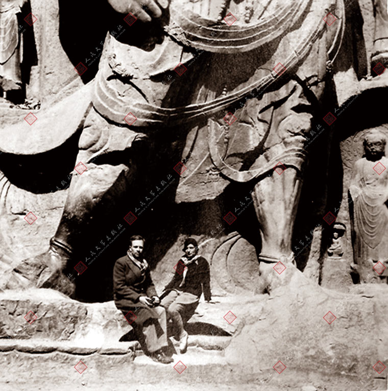 一九三四年秋,费正清、费慰梅在河南洛阳龙门石窟奉先寺大卢舍那像龛北侧金刚像下。