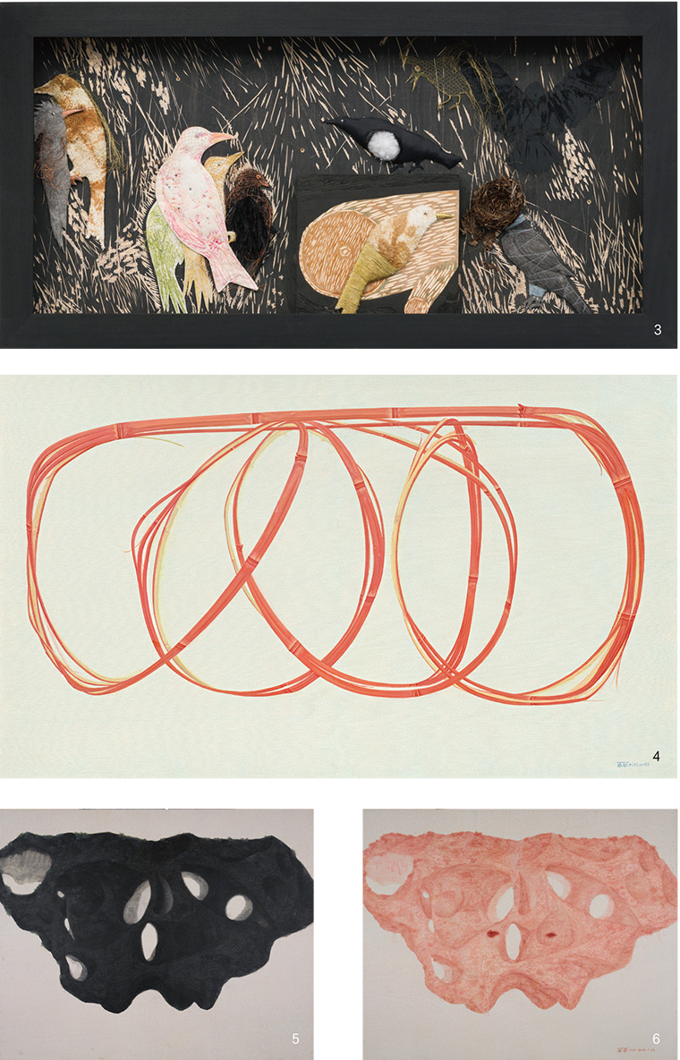 3.《我全部梦境的第一个梦》No.1 120×60cm综合材料2023;4.《承受偶然的重量》160×100cm布面油画2023;5.《闪光的形体A》80×100cm布面油画2020;6.《闪光的形体B》80×100cm布面油画2020