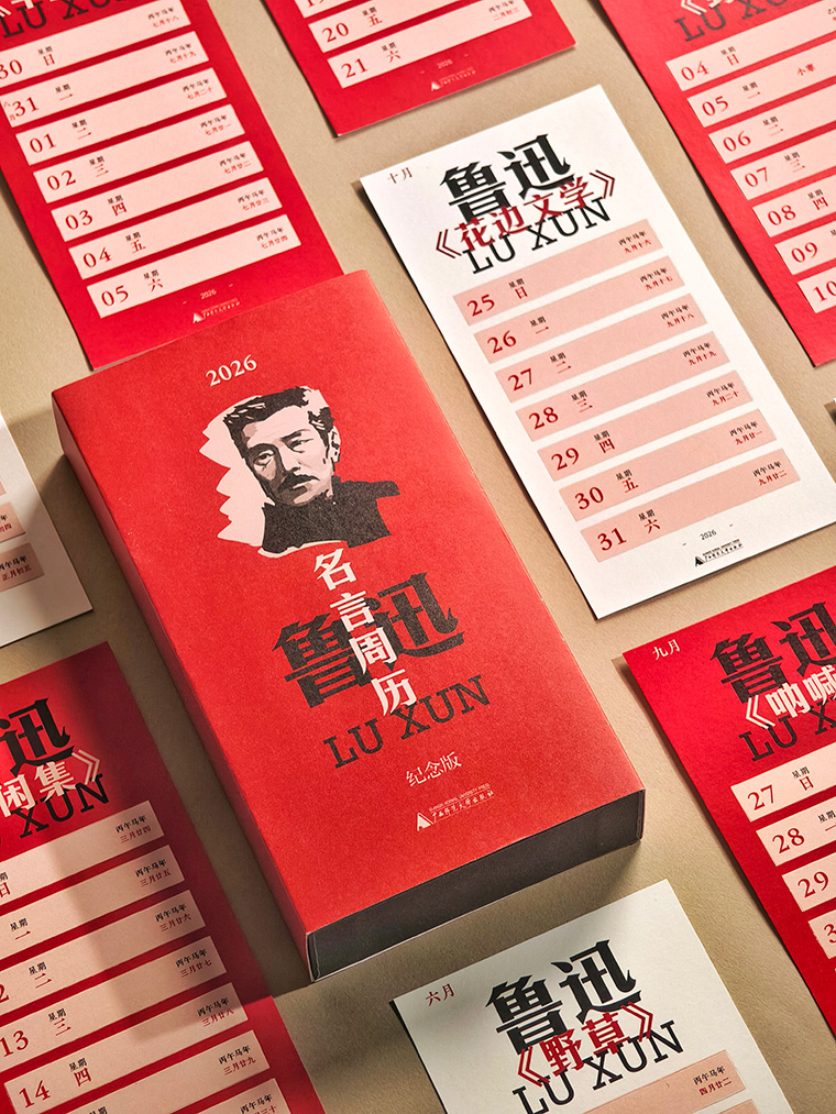 务实、清醒、即刻行动与鲁迅先生的每日对话文 韩哈哈 资料提供 广西师范大学出版社阅·见文创一本好的日历,或许不应只是提醒我们“日子过去了”,而是帮助我们清醒地度过它,寻回一种专注、深刻、敢于直面真实的生活姿态。2026年是鲁迅先生逝世90周年,广西师范大学出版社阅·见文创设计了一种朴素却有力的方式回归:每日一页,每页一句先生的话。从“时间就是性命”的警醒,到“地上本没有路”的勇气,365句,如同365次轻而坚定的叩问。设计师牙云龙称它为“思想盲盒”——在这个信息过剩、观点泛滥的年代,我们的确需要一种沉静而清醒的声音。