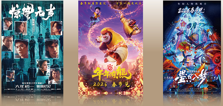 2026年电影春节档汇聚了《飞驰人生3》《惊蛰无声》《镖人:风起大漠》《熊出没·年年有熊》《熊猫计划之部落奇遇记》《星河入梦》等多部题材丰富、类型各异的国产新片,较好满足了不同地域、全年龄层、多元化的观影需求。中国电影观众满意度调查显示,2026年春节档满意度得分86,居历年第二。 春节档电影市场的火热,助推今年以来中国电影超过90亿元人民币的票房成绩,暂列全球单一市场票房冠军。在国内电影市场火热的同时,今年春节期间,电影局组织春节档影片积极开拓海外市场,向全球讲好中国故事,传递中国精神,实现“全球同映、新春同庆”。 农历大年初一,2026年春节档影片《惊蛰无声》《镖人:风起大漠》《熊猫计划之部落奇遇记》在北美、澳新、英国、新加坡、马来西亚、港澳等十余个全球主要电影市场上映。其中《镖人:风起大漠》在马来西亚上映以来,票房一路飙升,截止到大年初六,总票房已超过500万令吉,约合885万元人民币,稳坐票房榜前三。影片不仅获得了华人观众的支持,也吸引到大批马来西亚观众走进影院。 此外,《飞驰人生3》《星河入梦》《熊出没·年年有熊》三部影片自2月下旬起陆续登陆全球电影市场。