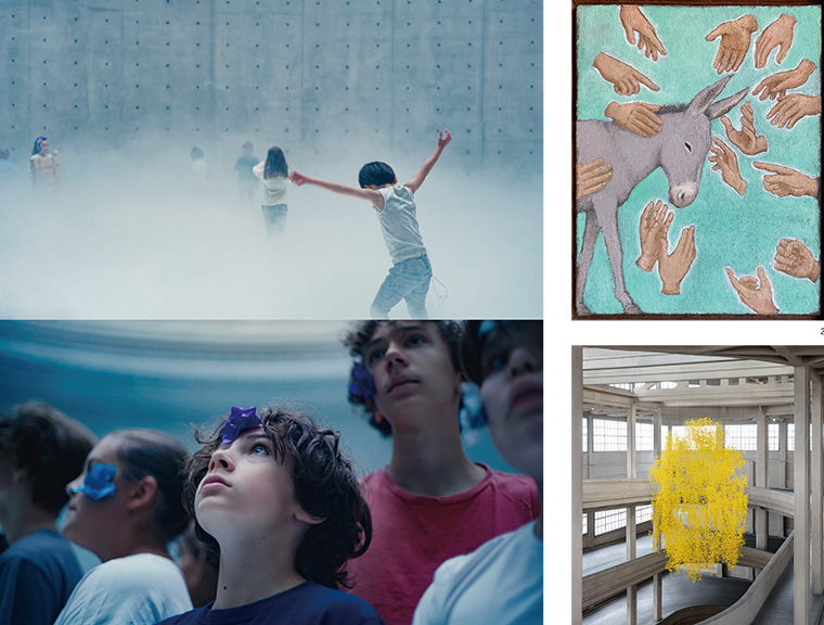 1.利娜·拉佩莱特,《言语》,2024年至今,表演及影像装置,尺寸可变,利娜·拉佩莱特作品《言语》的表演记录,巴黎秋季艺术节,巴黎商品交易所-皮诺收藏美术馆,2024年。摄影:马蒂纳什·诺尔瓦伊萨斯。艺术家和巴黎商品交易所-皮诺收藏美术馆惠允©安藤忠雄建筑事务所、尼内和马尔卡建筑事务所、皮埃尔-安托万·加捷建筑事务所。